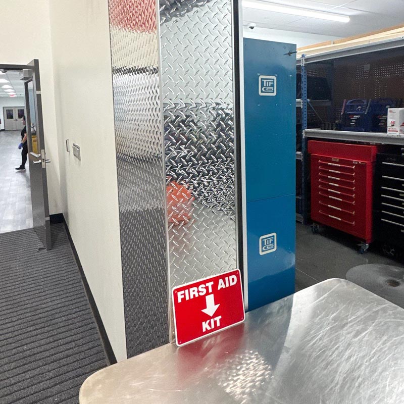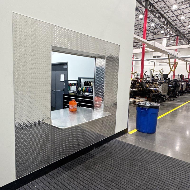 To address the challenges of a mechanical training environment, we installed diamond plate sheet metal panels throughout selected spaces. These panels not only withstand the wear and tear of daily use but also offer a sleek, professional finish that elevates the look of the college’s work areas. The project also included the installation of a custom oil drain station in the mechanic shop, providing students with a practical, long-lasting solution for managing fluids safely and efficiently. By combining tough materials with thoughtful design, we’re helping ensure that NADC’s training spaces remain functional, clean, and modern for years to come.