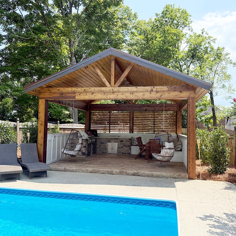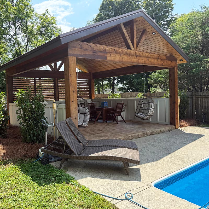 Property Renovation Services was hired to create a poolside structure for a family in Hendersonville who wanted a dedicated space to relax and entertain without constantly returning to the house. The result is a custom-built gazebo that functions as the perfect outdoor hangout area, complete with space for drinks, cooking, and gathering with friends and family. Designed to complement the pool and surrounding landscape, the structure adds both beauty and convenience to the homeowners’ outdoor living experience.